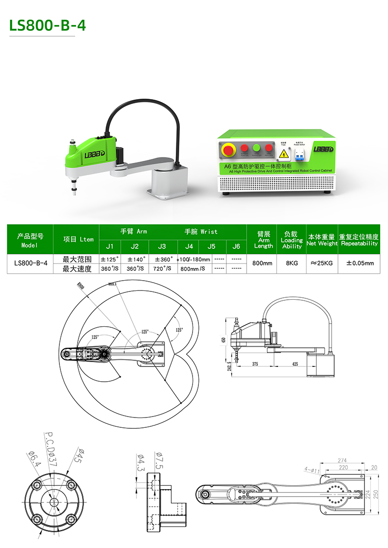 【运动半径】800mm
